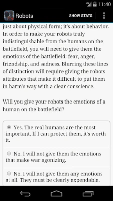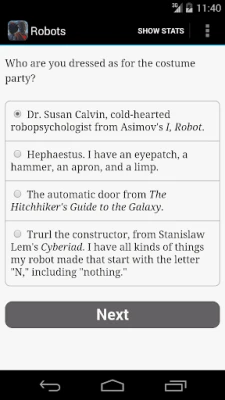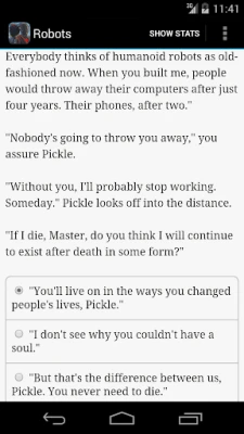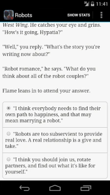 "Choice of Robots" is an epic 300,000-word interactive sci-fi novel by Kevin Gold, where your choices control the story. It's entirely text-based—without graphics or sound effects—and fueled by the vast, unstoppable power of your imagination.