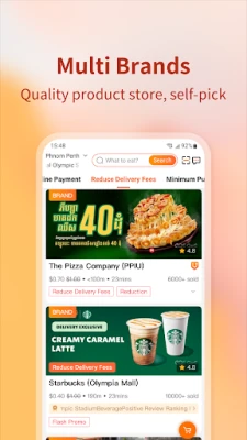 ①Various food brands: KFC, McDonald's, Pizza Hut, Starbucks Various foods nearby: Chinese, Western, Khmer; hot pot, BBQ, bakery, burgers; breakfast, afternoon tea, night snack; desserts, flowers, fruits & vegetables, fresh food, sushi, coffee, Chinese supermarket groceries..."