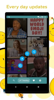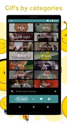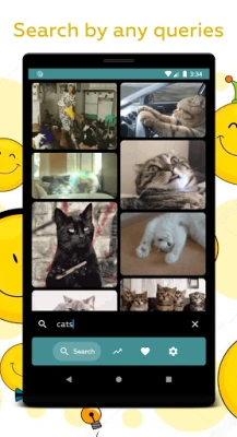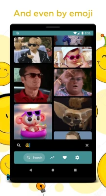 Our gif app works perfectly for free gifs searching. You can search gif even by emoji like this 😎. Try to search gifs by any emoji, this is very fun!